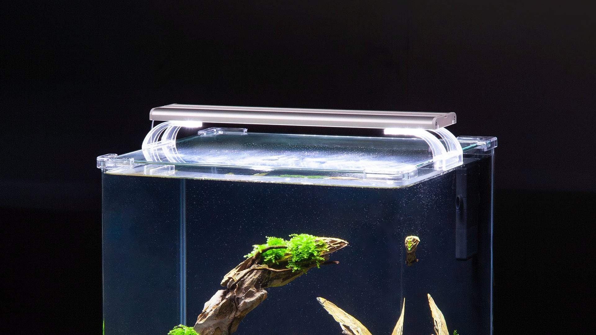 Praktickým bonusem jsou inovativní průhledné akrylátové držáky, které vytvářejí dojem, že lampa se vznáší nad akváriem, a zároveň se perfektně přizpůsobí jakémukoli typu nádrže. Pomocí chytrého posuvného systému lze navíc jednu LED jednotku flexibilně použít i v akváriích různých velikostí – vhodné pro skla do tloušťky 8 mm.
