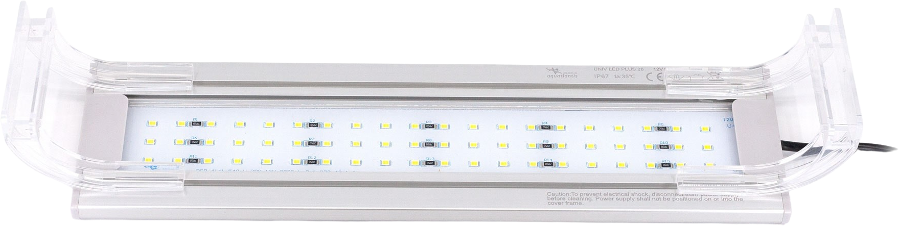Praktickým bonusem jsou inovativní průhledné akrylátové držáky, které vytvářejí dojem, že lampa se vznáší nad akváriem, a zároveň se perfektně přizpůsobí jakémukoli typu nádrže. Pomocí chytrého posuvného systému lze navíc jednu LED jednotku flexibilně použít i v akváriích různých velikostí – vhodné pro skla do tloušťky 8 mm.