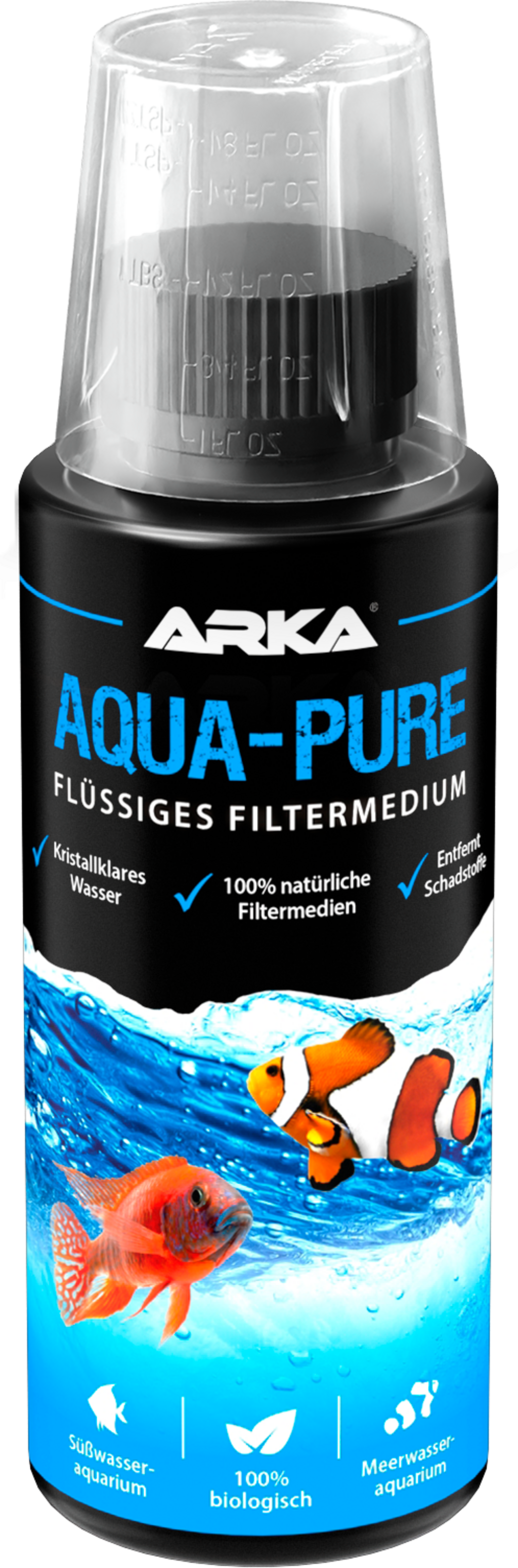 Aqua-Pure od značky ARKA zajišťuje křišťálově čistou vodu v akváriu. Speciálně vyvinutá směs prospěšných bakteriálních kultur udržuje sladkovodní i mořská akvária čistá a v optimálním stavu. Přípravek je ideální pro běžnou péči i jako řešení problémových situací ve sladké i mořské vodě.