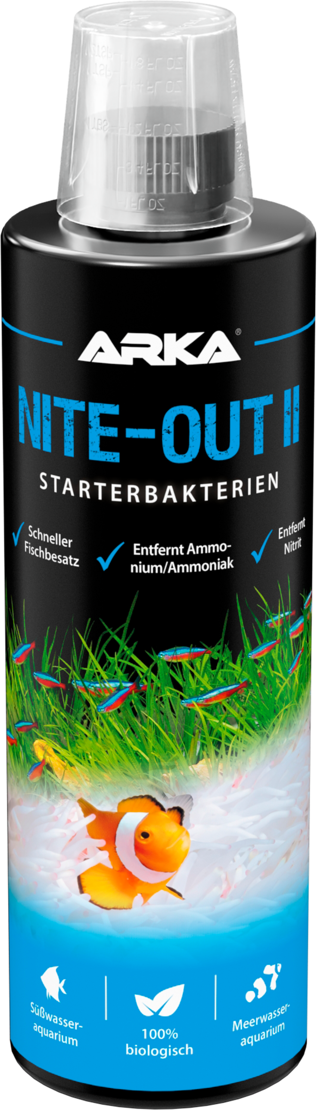 Nite-Out II je ideální pro založení akvária, při výměně vody a pro další údržbu. Obsahuje vysoce koncentrovanou bakteriální směs, která spolehlivě rozkládá amoniak a dusitany a výrazně snižuje tzv. Nitritpeak.