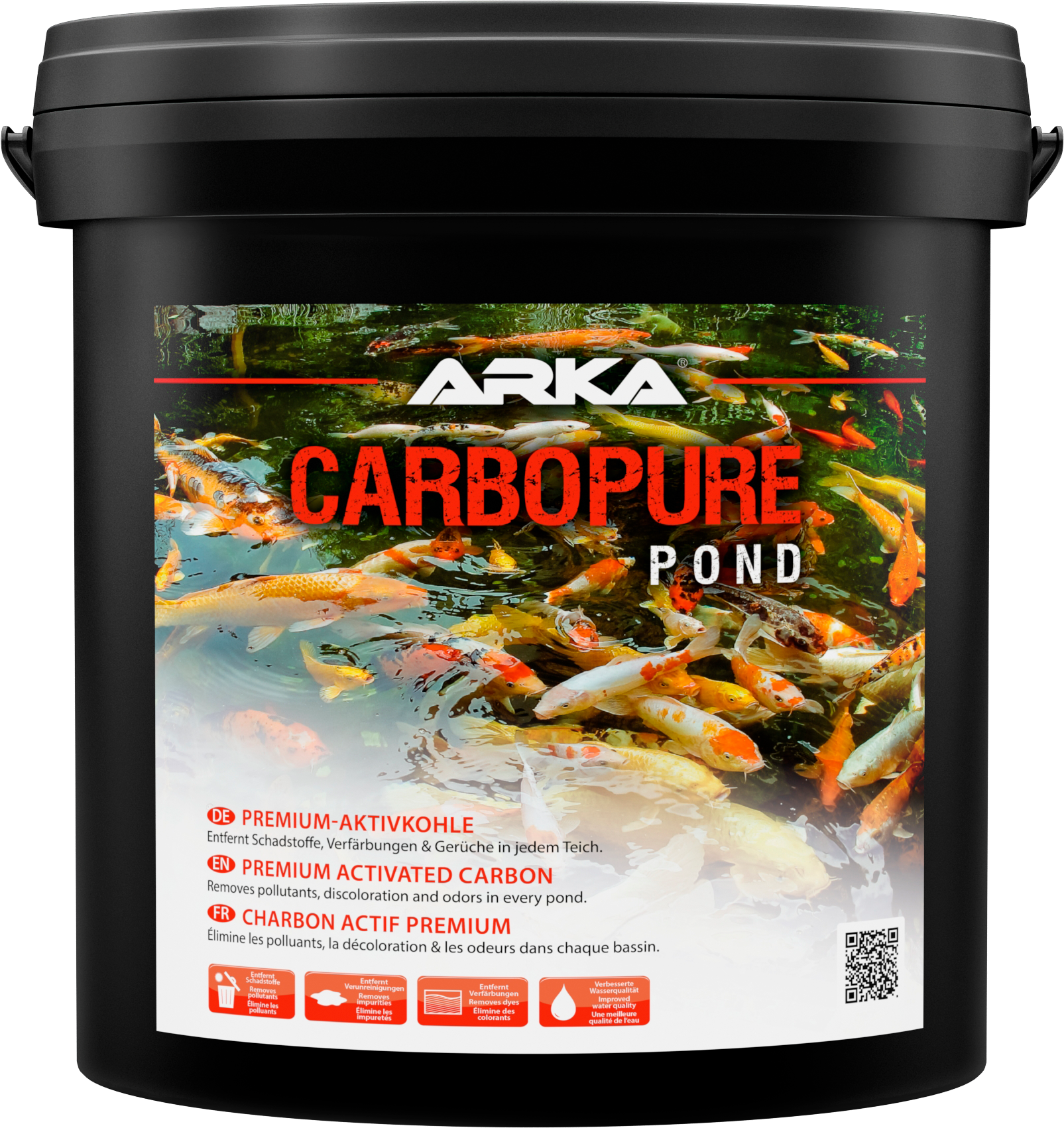 ARKA Carbopure Pond je vysoce kvalitní, parou aktivované a kyselinou prané peletové aktivní uhlí určené pro jezírka.
