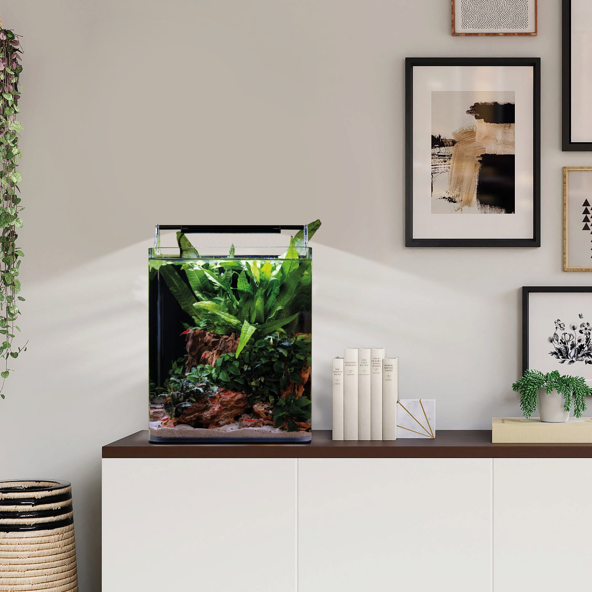 S Dennerle Nano Cube Complete si přenesete kousek živé přírody přímo na Váš pracovní stůl nebo do obývacího pokoje! Díky kvalitnímu sklu Floatglas a elegantně zaobleným rohům si můžete vychutnat jedinečný panoramatický pohled na Vaši podvodní krajinu, aniž by byl narušen rušivými hranami.