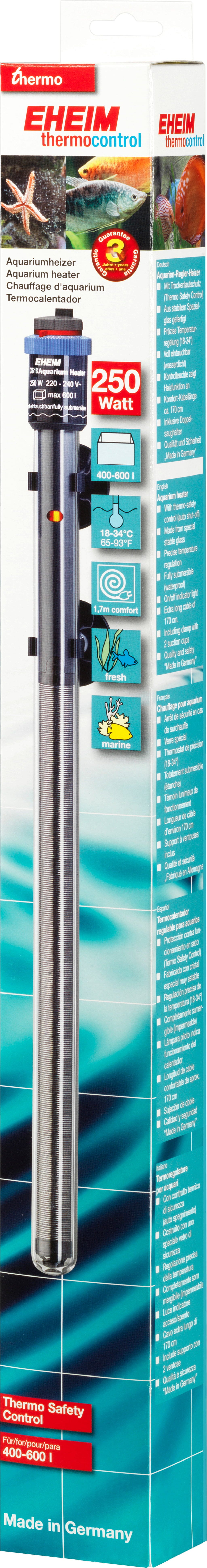 Ohřívač thermocontrol značky Eheim se jednoduše vloží do vody a ohřeje ji. Teplotu lze přesně nastavit. Plášť ze speciálního laboratorního skla zvětšuje ohřívací plochu, působí jako bariéra a zajišťuje rovnoměrný tepelný výkon.