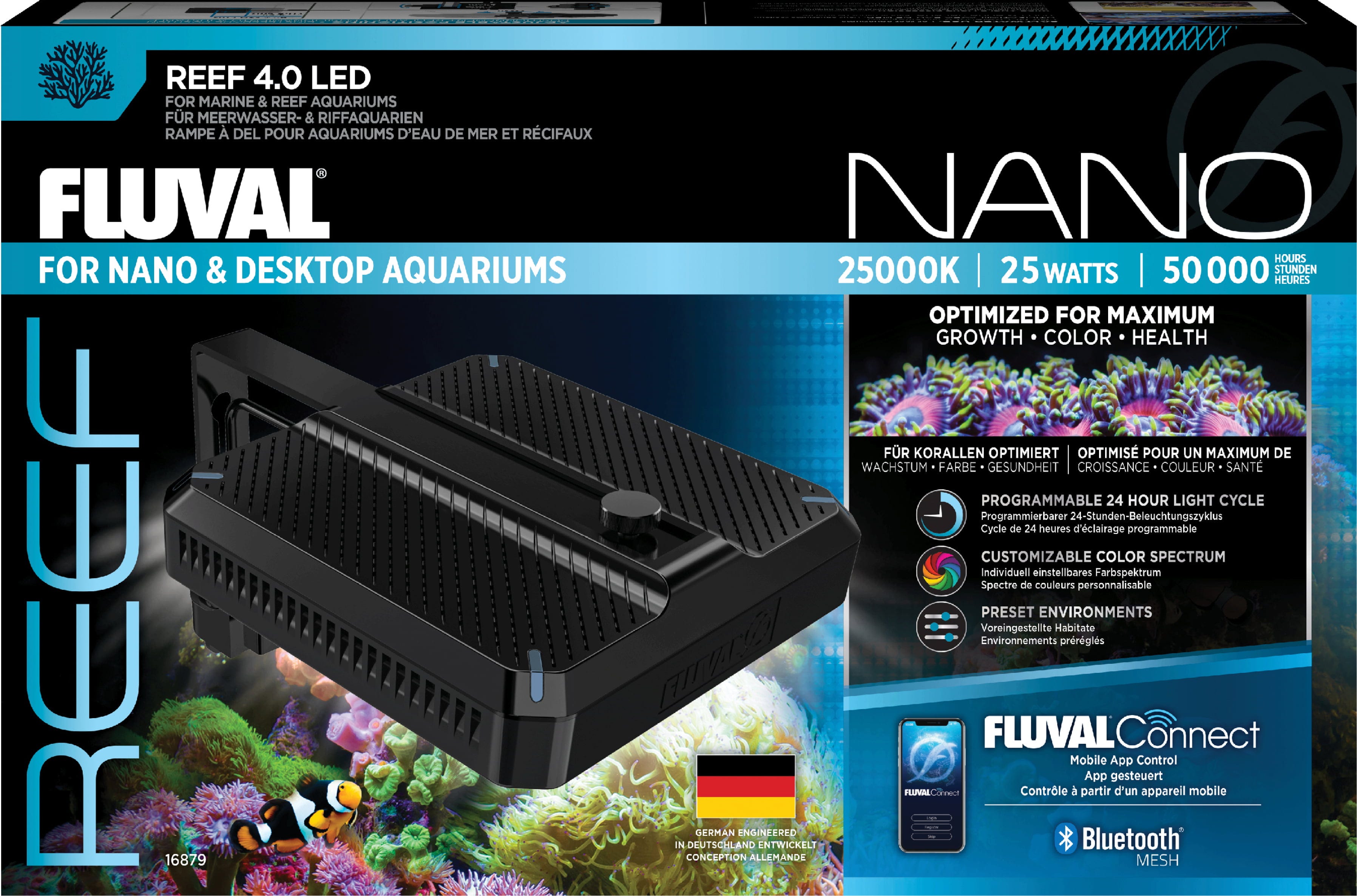 S Nano Reef 4.0 LED od Fluval získáte profesionální technologii přímo nad Vaše mořské akvárium! Toto výkonné 25 W svítidlo je speciálně navrženo pro podporu růstu a zbarvení korálů díky přesně vyladěnému plnospektrálnímu světlu včetně klíčové aktinické složky. Celý systém ovládáte intuitivně prostřednictvím aplikace FluvalConnect a máte plnou kontrolu nad individuálním nastavením jednotlivých barevných kanálů.