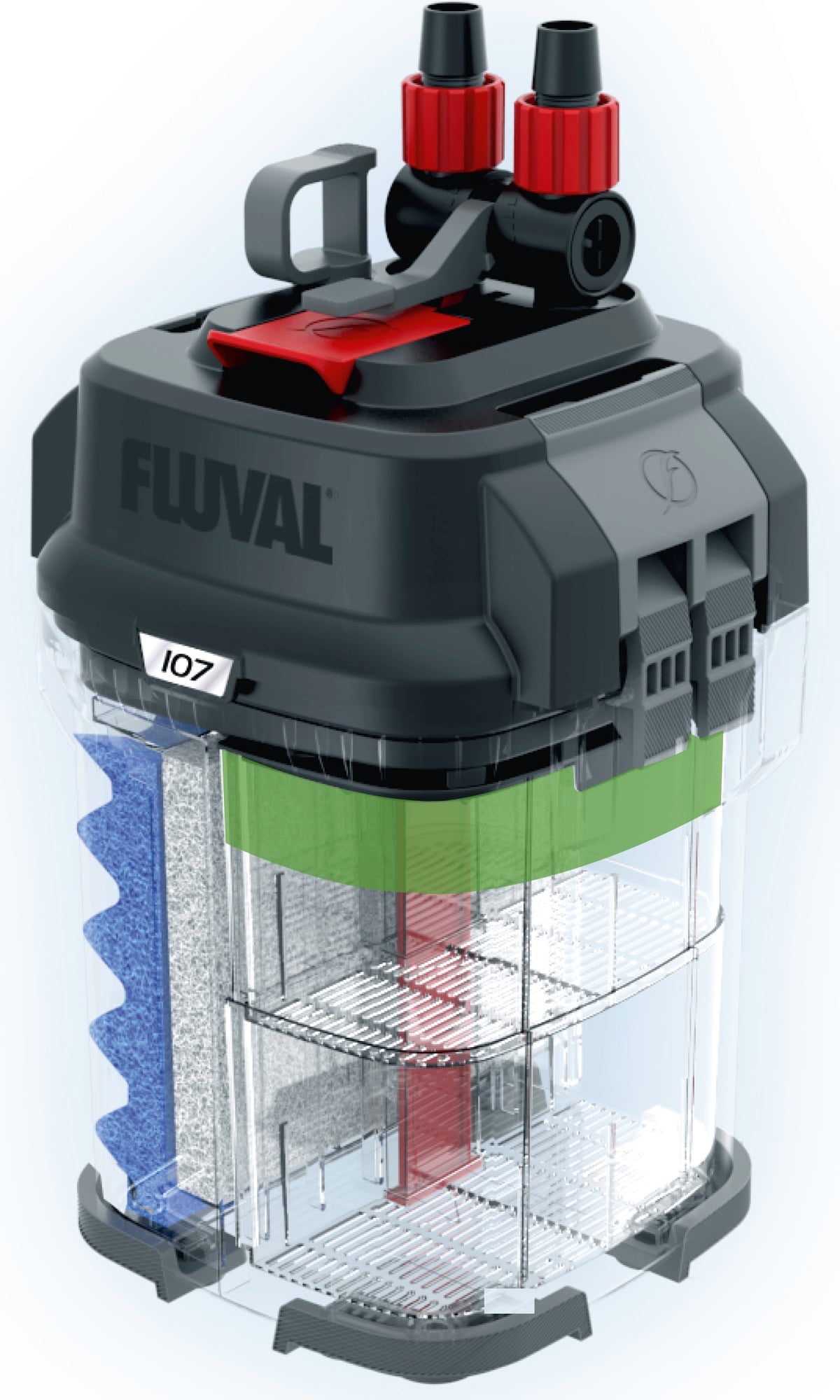 Řada 07 od Fluval posouvá oblast vnějších filtrů na zcela novou úroveň. Nejde jen o lehké kosmetické úpravy – tato řada vyniká řadou technických vylepšení a inovací. Filtry jsou až o čtvrtinu tišší než jejich předchůdci, mají robustnější konstrukci a znatelně vyšší výkon. A to vše bez zvýšení spotřeby energie – modely 107 a 207 například spotřebují pouhých 10 W, což odpovídá energii jediné LED žárovky.