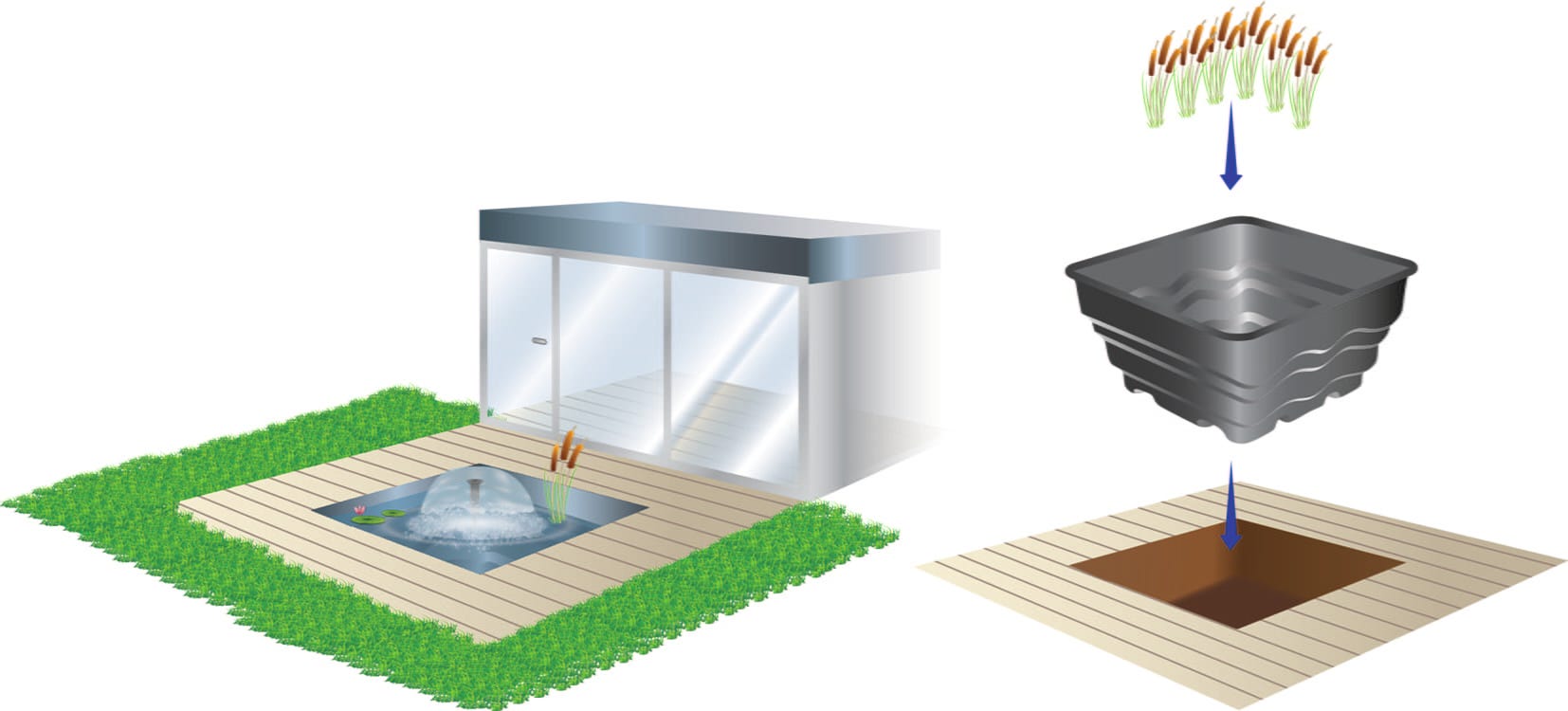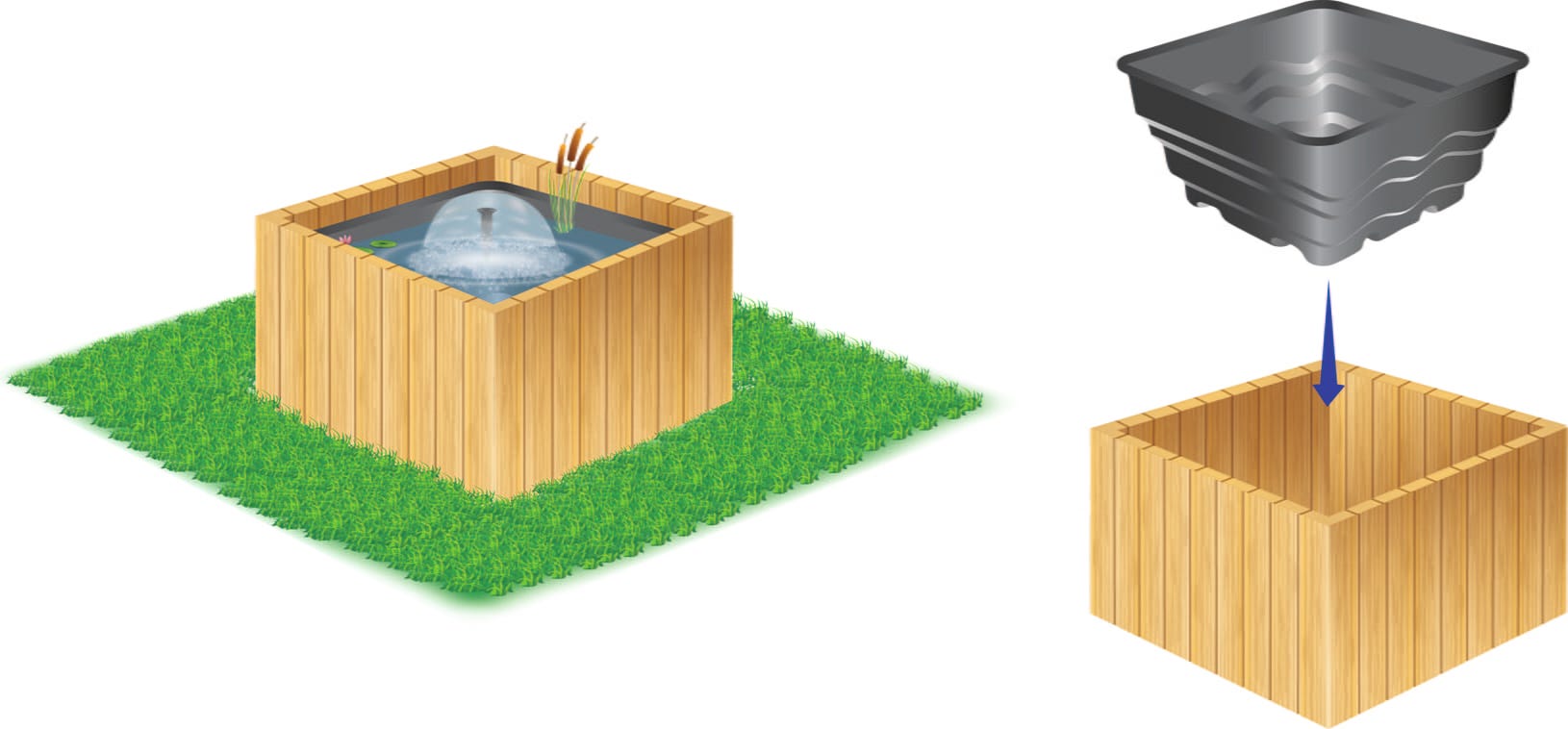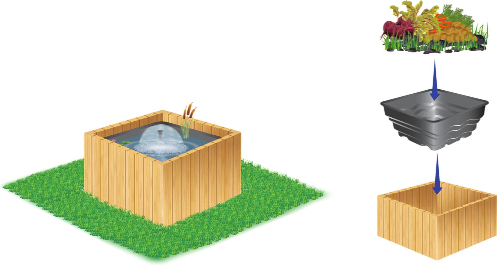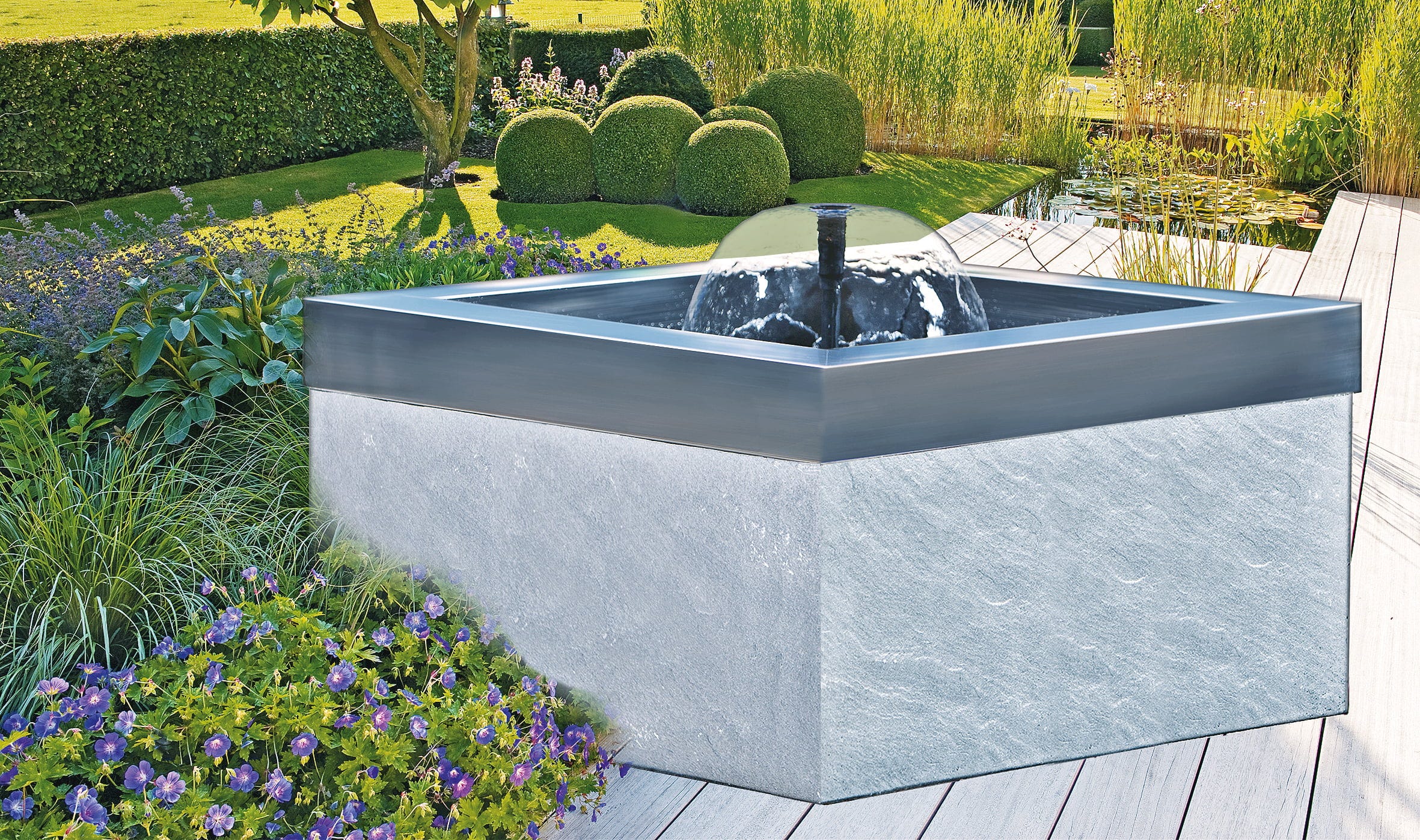 Jezírková nádrž HEISSNER umožňuje jednoduché vytvoření jezírka bez rizik spojených s běžnou pokládkou fólie. Nádoba z odolného polyethylenu se plynule začlení do zahradních záhonů, přírodních kamenných úprav nebo dřevěných teras. Integrované přepadové hrany navíc umožňují flexibilní rozšíření vodní plochy kombinací více nádrží do individuální kaskádové sestavy.