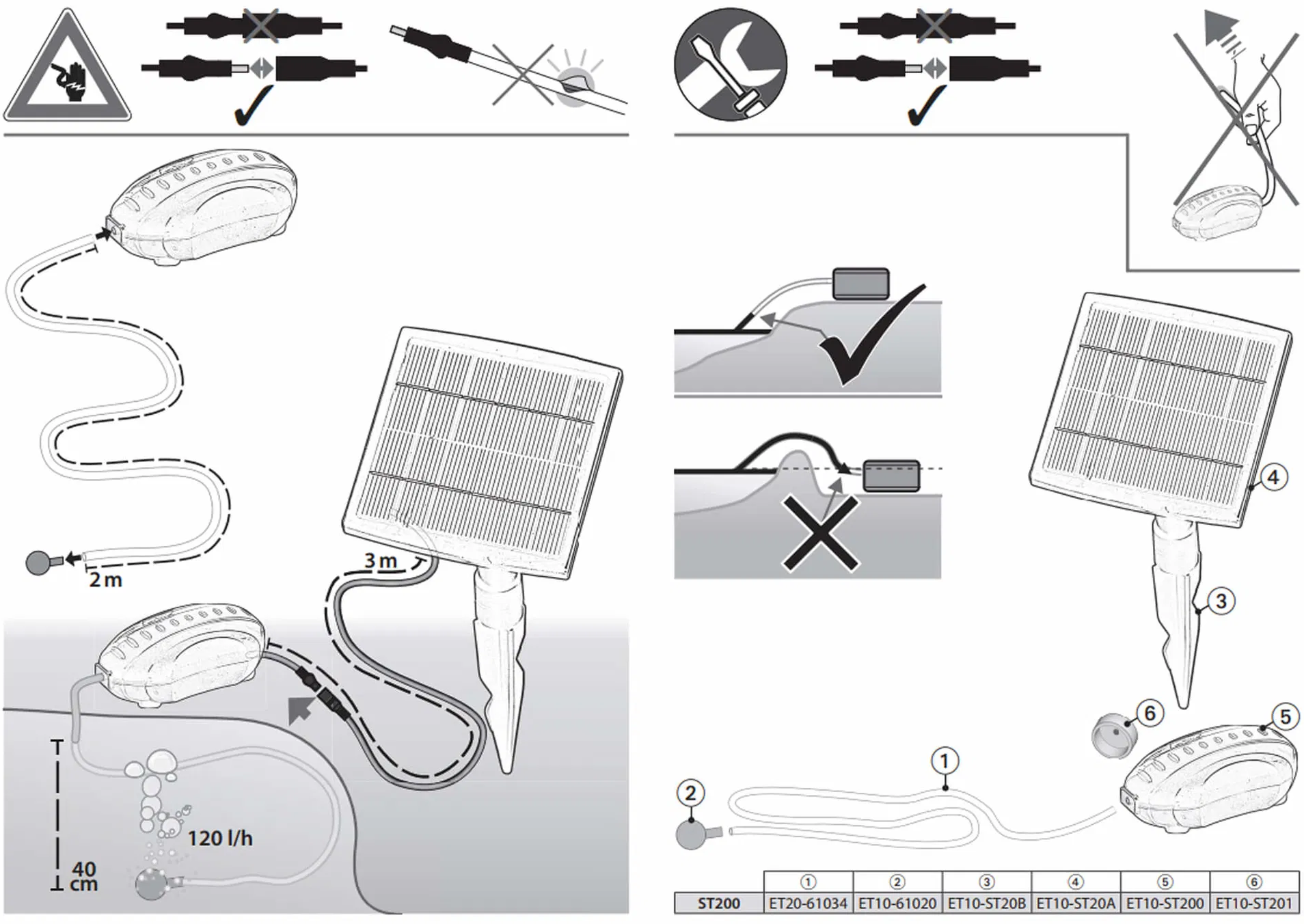 Solární jezírkový provzdušňovač HEISSNER nabízí ekologické řešení pro obohacování jezírka kyslíkem bez potřeby elektrické energie pro jezírka s hloubkou vody až 1,5 m. Systém využívá výkonný solární panel, který přímo napájí provzdušňovací čerpadlo - ideální pro místa bez pevné elektrické přípojky. Díky cílenému přívodu vzduchu a cirkulaci vody se stabilizuje biologická rovnováha, omezuje růst řas a vytváří zdravé prostředí pro ryby a rostliny.