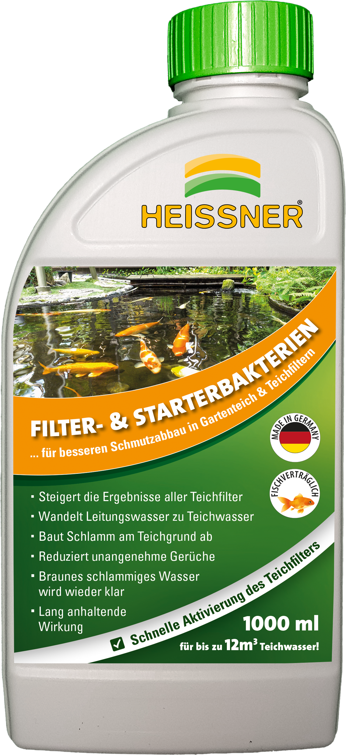 Filtrační a startovací bakterie HEISSNER obohacují ekosystém o důležité mikroorganismy, které výrazně urychlují přirozený rozklad škodlivých látek v jezírku a ve filtračním systému. Cílené přidání užitečných bakteriálních kultur aktivuje samočisticí procesy, které vyjasňují hnědou a kalnou vodu, neutralizují nepříjemné zápachy a účinně snižují organické usazeniny na dně jezírka.