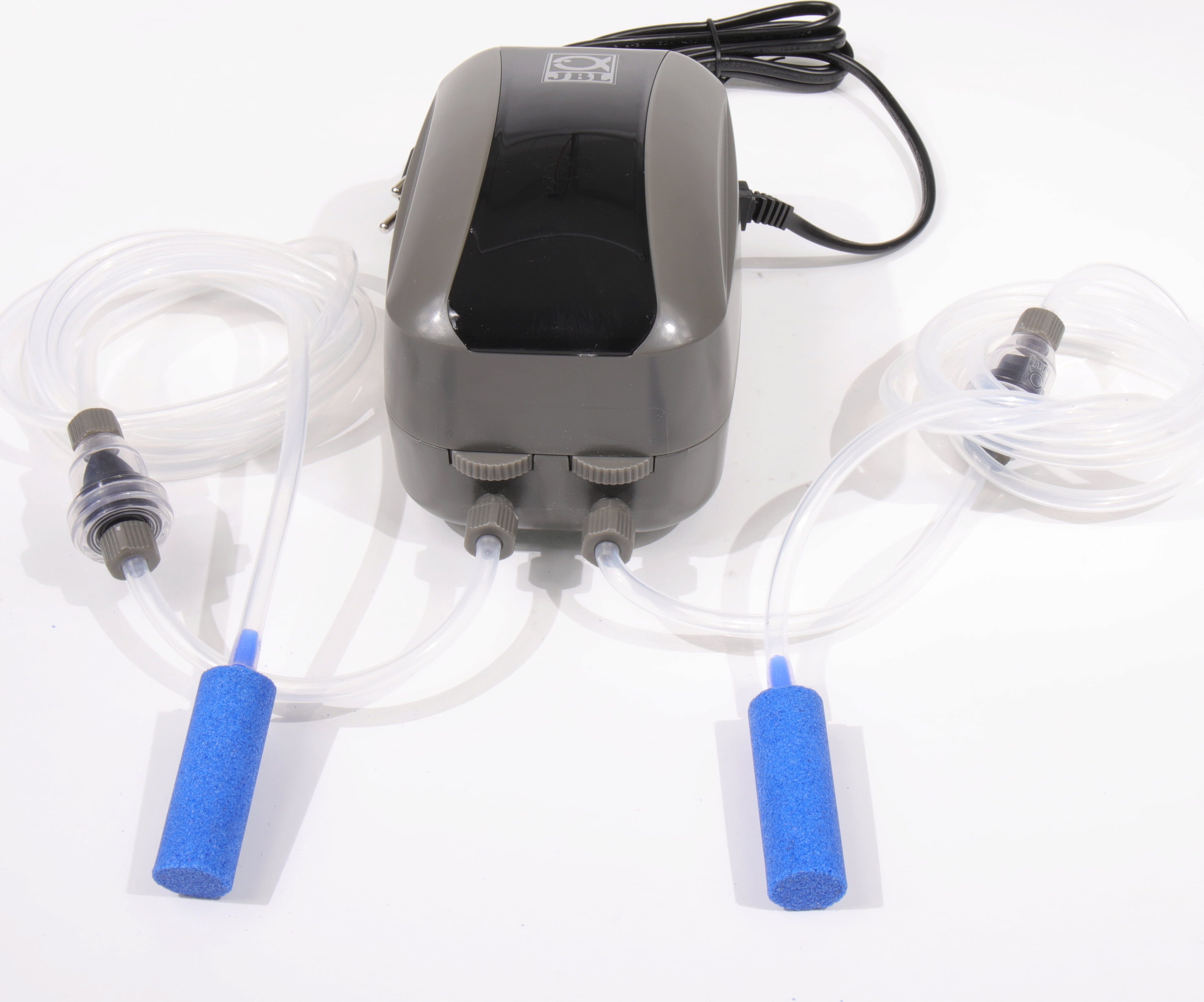 Máte plnou kontrolu nad dvěma samostatně regulovatelnými výstupy vzduchu, které můžete elektronicky nastavit podle Vašich potřeb. Instalace je velmi jednoduchá: stačí propojit hadičky se zpětnými bezpečnostními ventily a velkými vzduchovacími kameny a provzdušňování může okamžitě začít. Zda čerpadlo postavíte, nebo jej pohodlně zavěsíte, záleží pouze na Vás. Díky rozsáhlému příslušenství včetně 4 m hadičky jste ihned připraveni k použití!