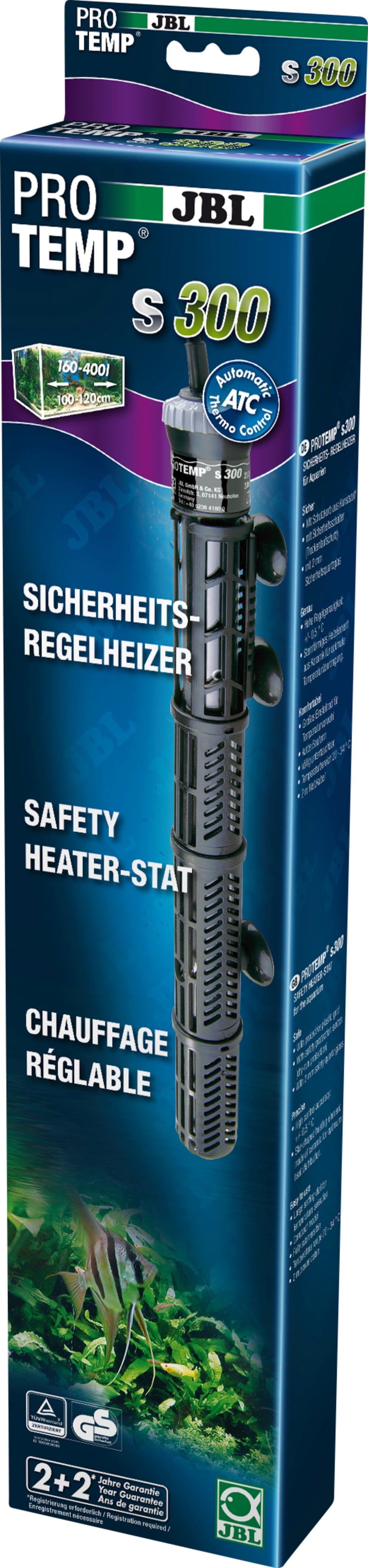 Ochranný koš zabraňuje popálení ryb. Ohřívač je odolný vůči vodě a lze jej ponořit až do hloubky 100 cm. Je velmi stabilní díky 2mm bezpečnostnímu křemennému sklu. Pokud klesne hladina vody nebo je ohřívač vyjmut z vody, tepelný bezpečnostní spínač přeruší přívod energie, aby chránil před přehřátím. Nastavitelný bezpečnostní ohřívač JBL ProTemp má certifikát TÜV.