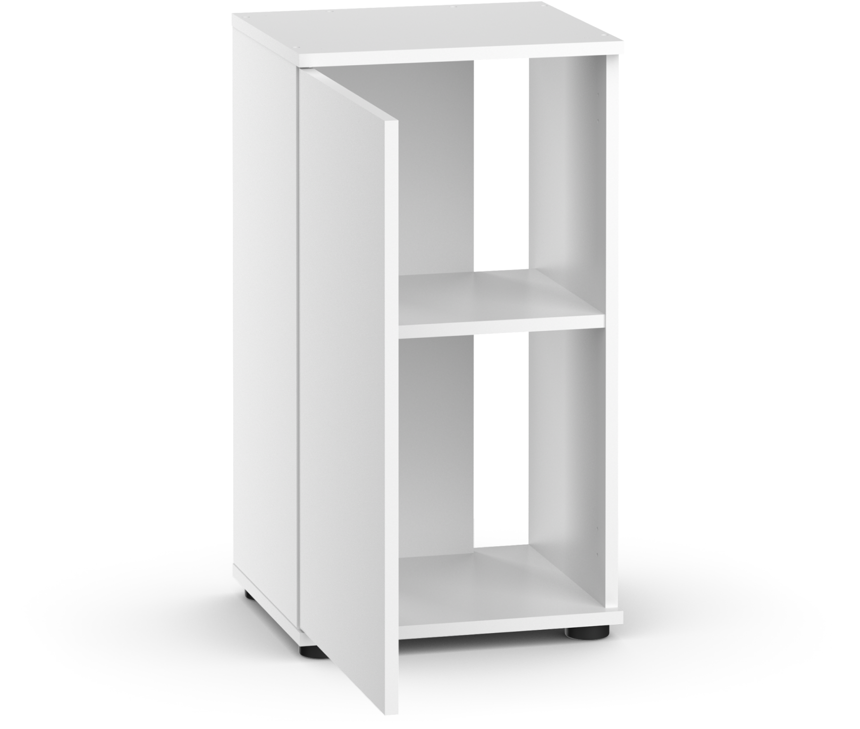Za dvířky se nachází prostorný úložný prostor, do kterého můžete přehledně a mimo pohled uložit krmivo pro ryby, síťku i další příslušenství pro údržbu. Okolí akvária tak zůstává uklizené, zatímco technika a pomůcky zůstávají diskrétně skryté. Montáž je díky promyšlené konstrukci rychlá a jednoduchá, takže se můžete brzy soustředit na to nejdůležitější – zařízení a užívání svého Vio Cube.