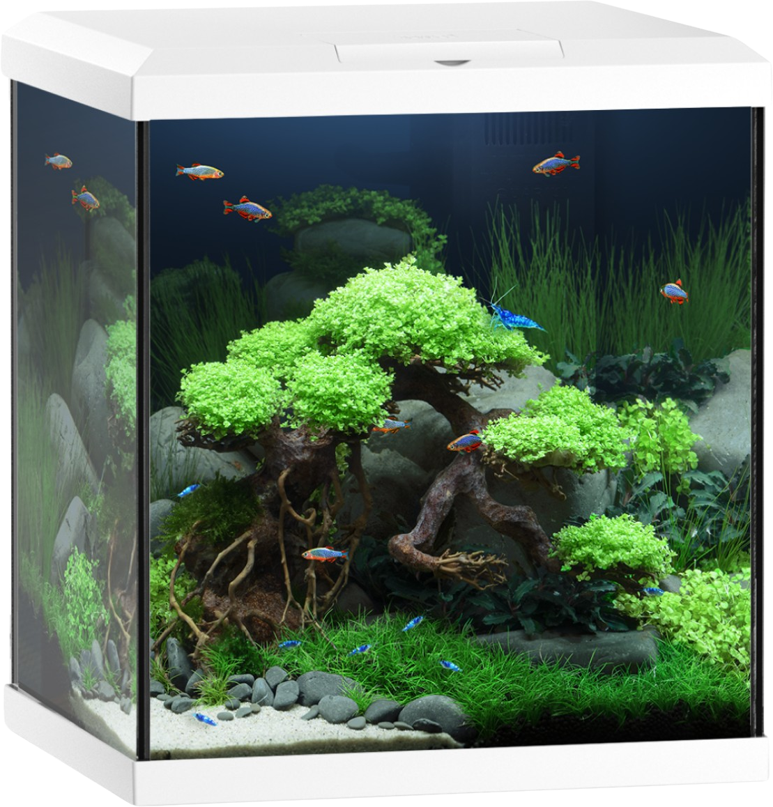 - Stabilní postavení bez podložky: speciální bezpečnostní spodní rám umožňuje okamžité a snadné umístění akvária.