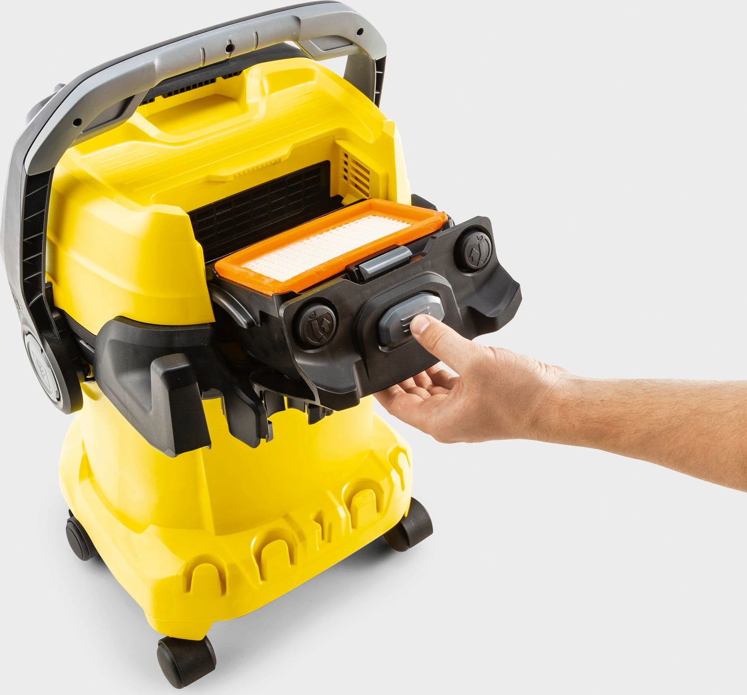 Vysavač pro mokré a suché vysávání WD 5 Control P 25/5/22 je správnou volbou pro náročné domácí kutily a všestranné použití kolem domu, v dílně i na stavbě. Se sacím výkonem 280 W a robustní 25litrovou plastovou nádrží spolehlivě odstraňuje suché i mokré nečistoty. Díky integrované zásuvce pro elektrické nářadí je vysavač ideální pro práci s elektronářadím a automaticky se spouští při práci – což je praktické při renovacích nebo při broušení a řezání v dílně.
