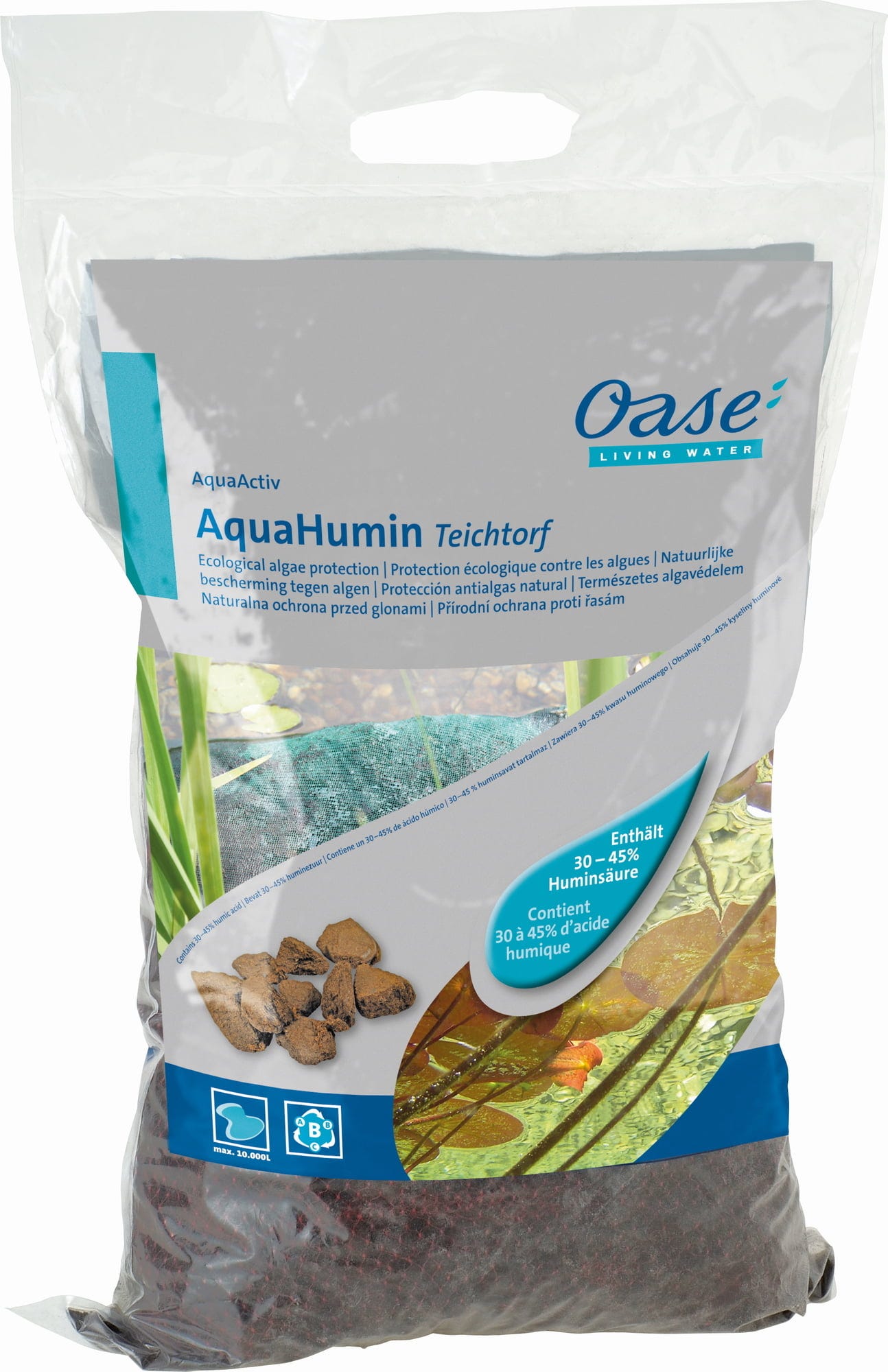 Oase AquaActiv AquaHumin je speciální rašelina pro fyzikální prevenci růstu řas díky efektu slunečních brýlí. Obsahuje 30–45 % huminových kyselin, změkčuje vodu a šetrně snižuje hodnotu pH.