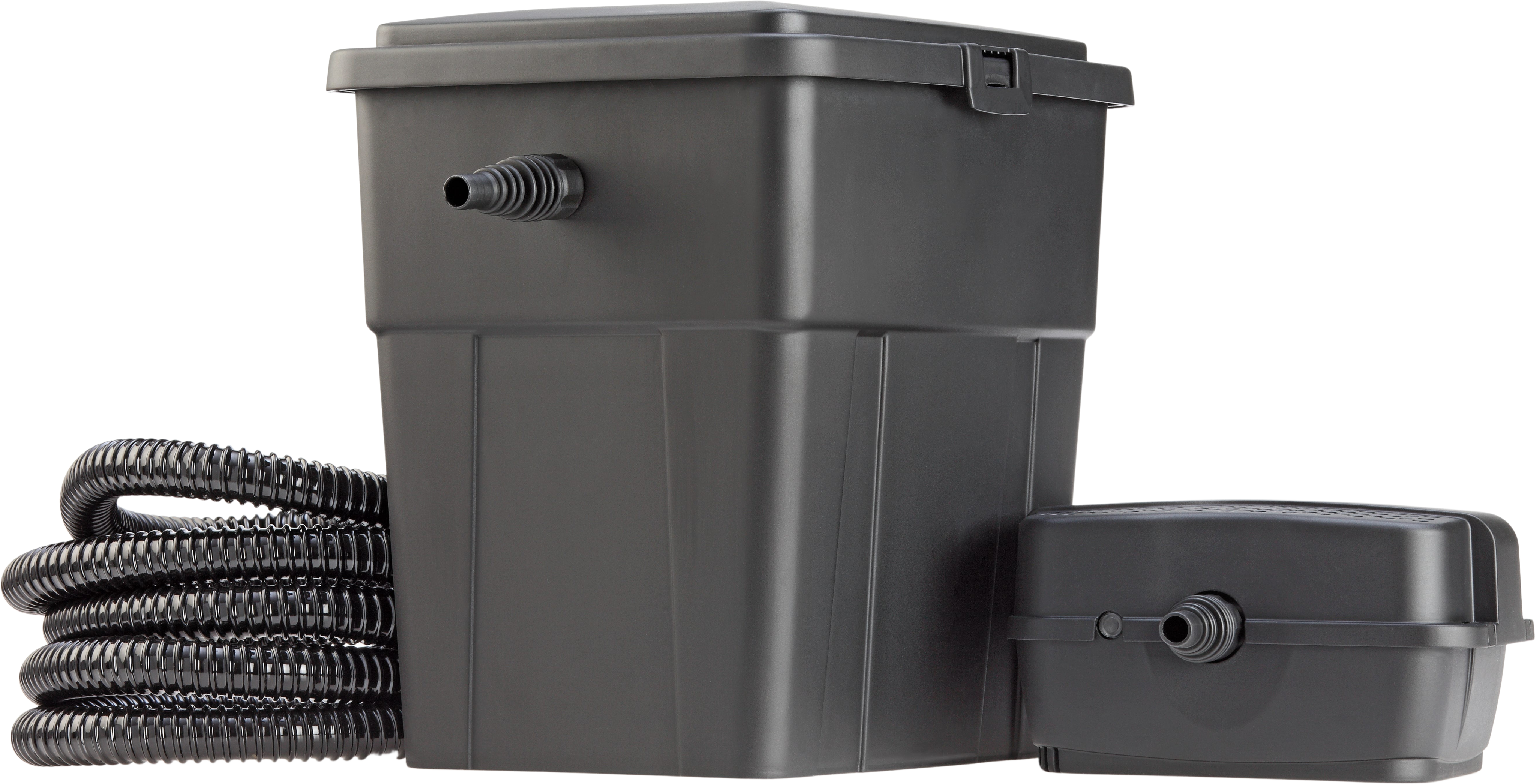Základem je efektivní filtrační čerpadlo s příkonem 20 W, které přečerpá přibližně 1000 litrů vody za hodinu a bez obtíží dopraví do filtračního systému i hrubé částice o velikosti až 4 mm. Ještě před průchodem jednotlivými mechanickými filtračními stupni se voda upravuje pomocí integrovaného 7 W UVC předřazeného zařízení, které účinně neutralizuje nežádoucí vláknité řasy.