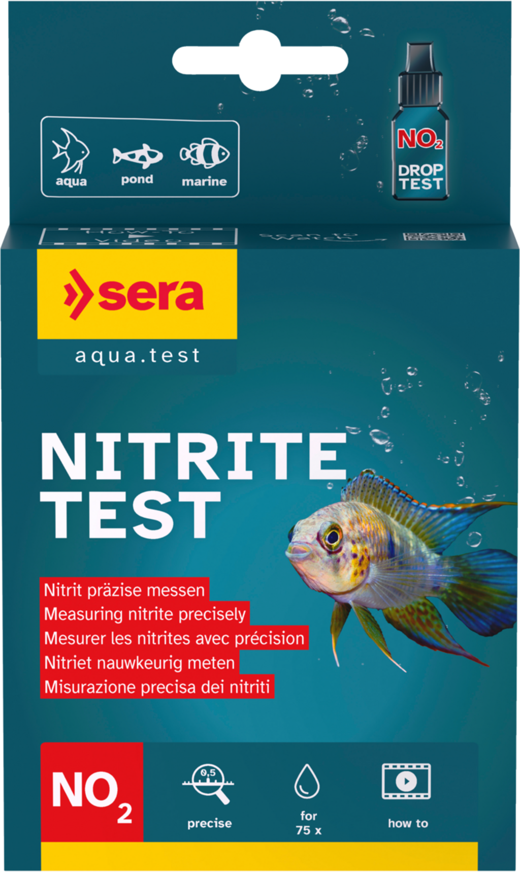 Sera NO2 test je test pro kontrolu obsahu dusitanů ve sladkovodních a mořských akváriích, stejně jako v zahradních jezírkách.