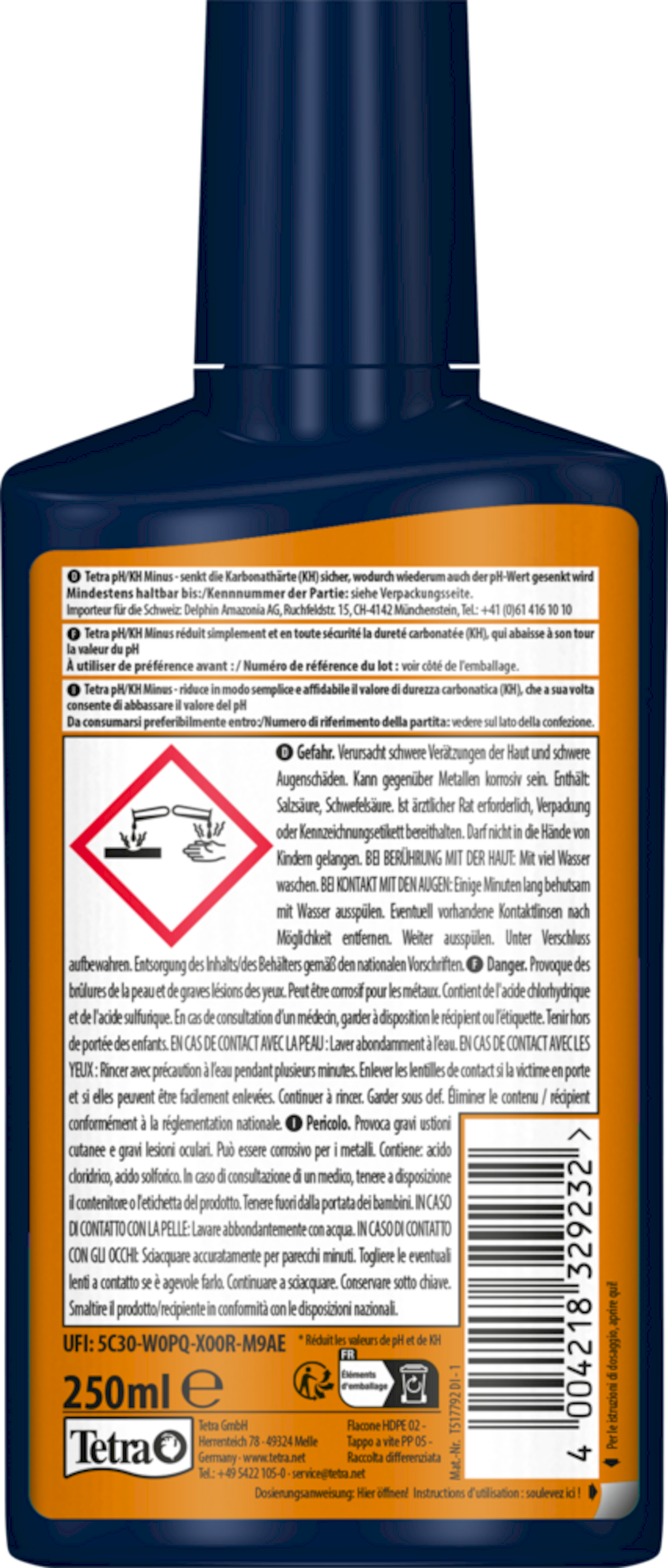 S přípravkem Tetra pH/KH Minus upravíte vodní prostředí ve Vašem akváriu přesně podle potřeb jeho obyvatel a vytvoříte ideální podmínky pro okrasné ryby, které preferují měkčí vodu. Mnoho druhů ryb se cítí dobře až při hodnotě pH pod 7,5 a uhličitanové tvrdosti přibližně 4 °dH.