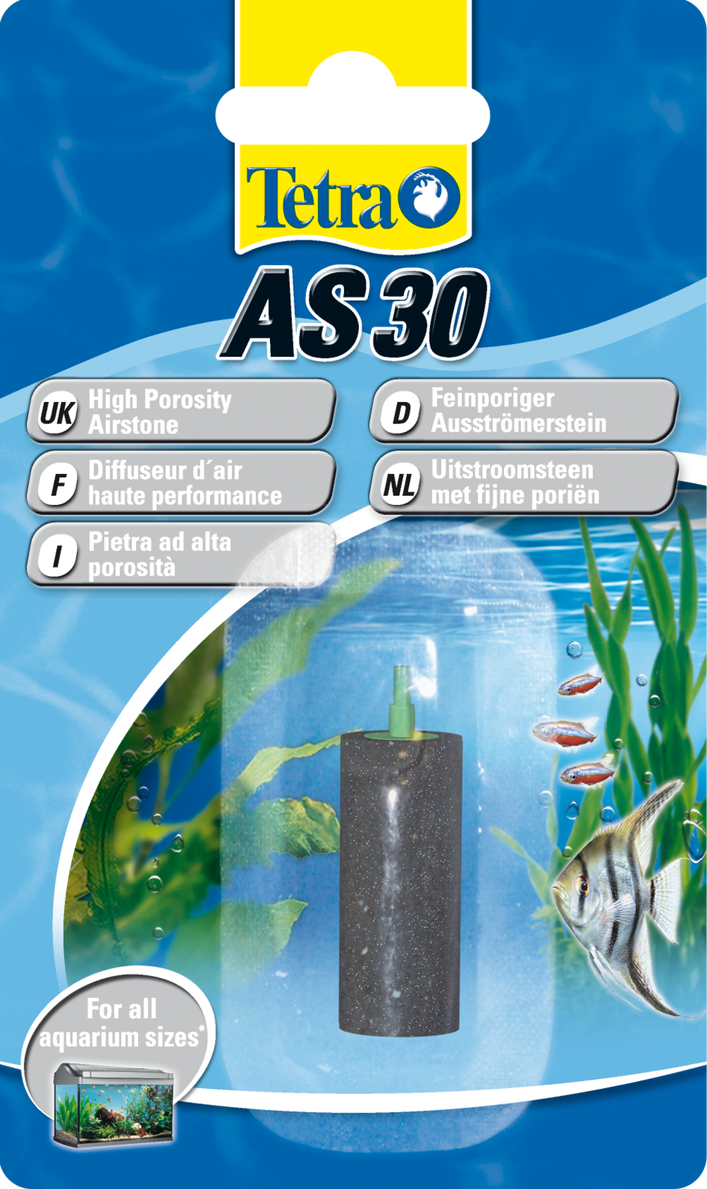 Vzduchovací kámen je nezbytný pro provoz vzduchem poháněných houbových filtrů nebo pro zvýšení obsahu kyslíku díky zvýšenému pohybu na povrchu. Tento vzduchovací kámen - určený pro použití se vzduchovým čerpadlem Tetra APS - zvyšuje obsah kyslíku v akváriích. Příslušenství se připojí k hadici čerpadla AH 50-400 a umístí se do akvária.